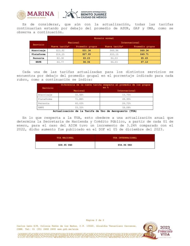 EI AICM argumenta que las tarifas de los servicios aeroportuarios no han sido ajustadas desde hace varios años; sin embargo, su alta rentabilidad no justifica más incrementos y menos aún con porcentajes desmedidos que afectan a las empresas, a los pasajeros y restan competitividad al principal centro de conectividad aérea del país y de toda América Latina.
