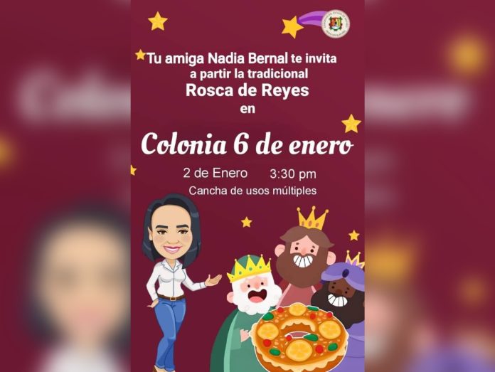 Local DIPUTADA NADIA BERNAL INVITA A LA ROSCA DE REYES Por Areli Flores - 2 de enero de 2024 0 172 FacebookTwitterWhatsAppTelegram Este dos de enero a las 3:30 de la tarde la diputada Nadia Bernal invita a la Rosca de Reyes en la colonia 6 de enero de Tepic.