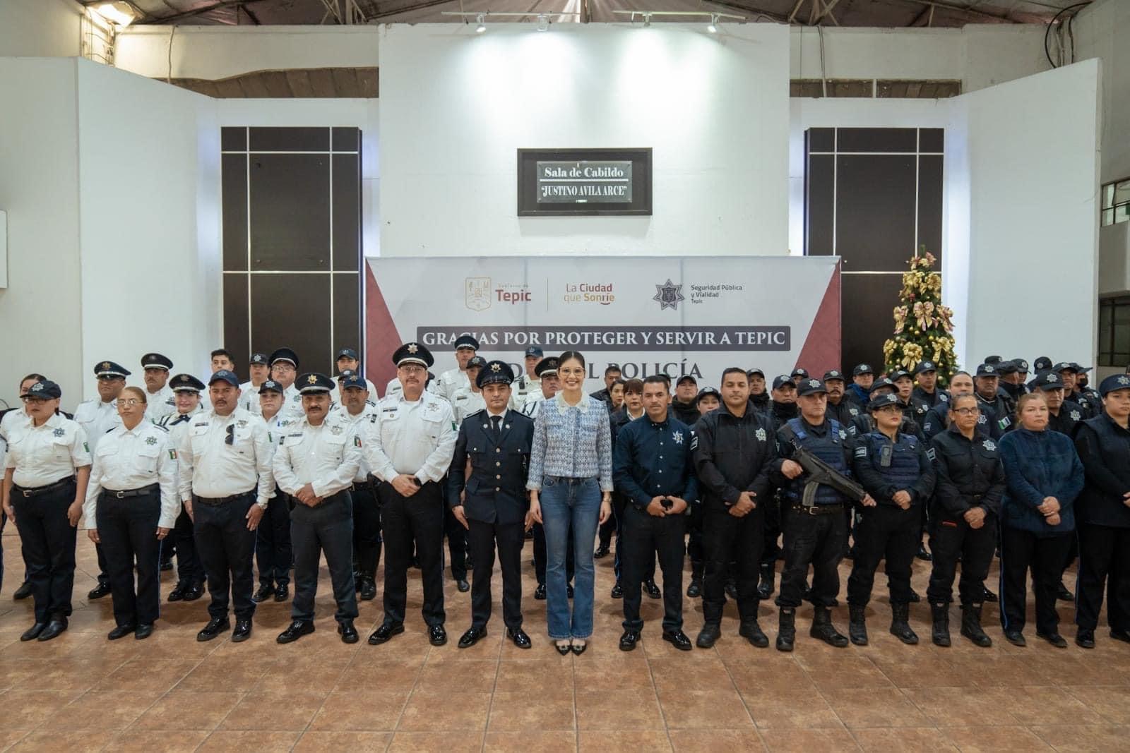 La presidenta municipal de Tepic, Geraldine Ponce, anunció el mayor incremento en la historia de la Policía de Tepic para agentes activos, el cual será de 2 mil pesos mensuales, mismo que se verá reflejado a partir de la próxima quincena, esto en el marco de la entrega de reconocimientos por el Día del Policía.
