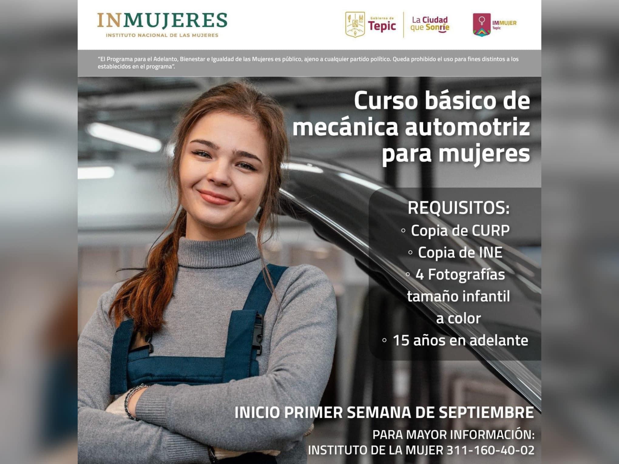 Local ANUNCIAN EN TEPIC CURSO DE MECÁNICA AUTOMOTRIZ PARA MUJERES Por Redacción - 28 de agosto de 2024 0 200 FacebookTwitterWhatsAppTelegram El Gobierno de Tepic invita a las mujeres de 15 años en adelante a participar, a partir de la primera semana de septiembre, te compartimos los requisitos.