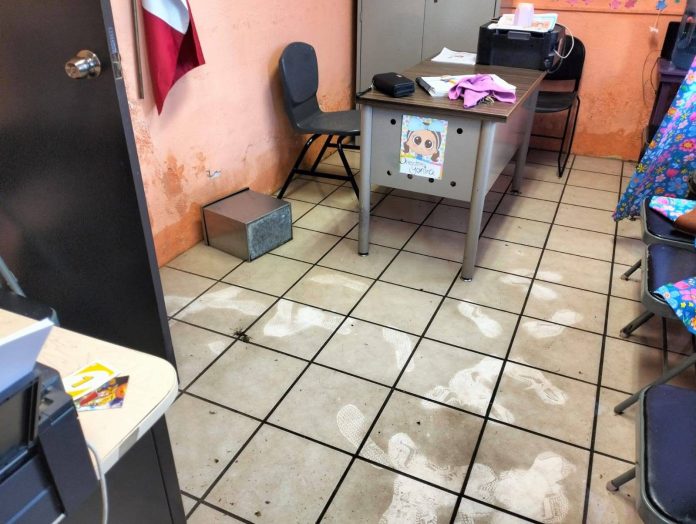 Padres de familia denuncian que así quedó el Jardín de Niños «Diana Laura Riojas de Colosio» que se ubica en Sandía 8 de la colonia Comerciantes en Tepic por las lluvias de este fin de semana, ya se ha pedido apoyo para mejorar tuberías y bardeado pero no nos han hecho caso, esta vez el agua limpia y las aguas negras entraron hasta las aulas.