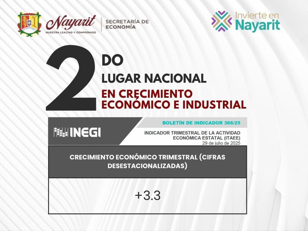 NAYARIT SE POSICIONA COMO LA 2ª ENTIDAD DE MÉXICO CON MAYOR CRECIMIENTO ECONÓMICO