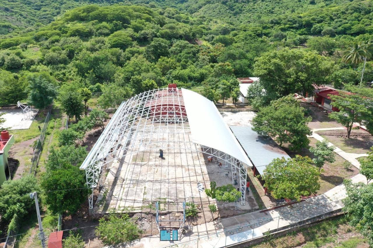 El gobierno del estado de Nayarit, que encabeza Miguel Ángel Navarro Quintero, avanza en la construcción del domo escolar y la cancha deportiva en la Primaria Indígena Emiliano Zapata, ubicada en la comunidad de Potrero de la Palmita, municipio Del Nayar.