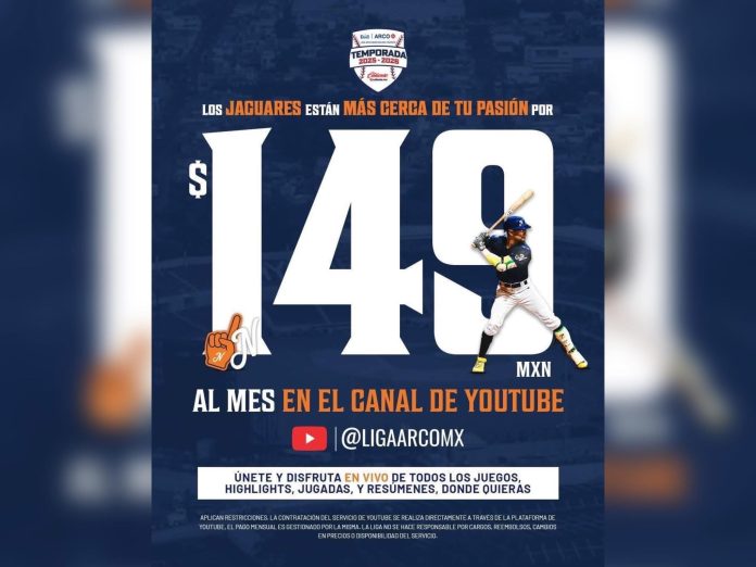 Los juegos de los Jaguares de Nayarit se podrán ver por el canal de YouTube de la Liga ARCO Mexicana del Pacífico por una suscripción de $149 al mes.