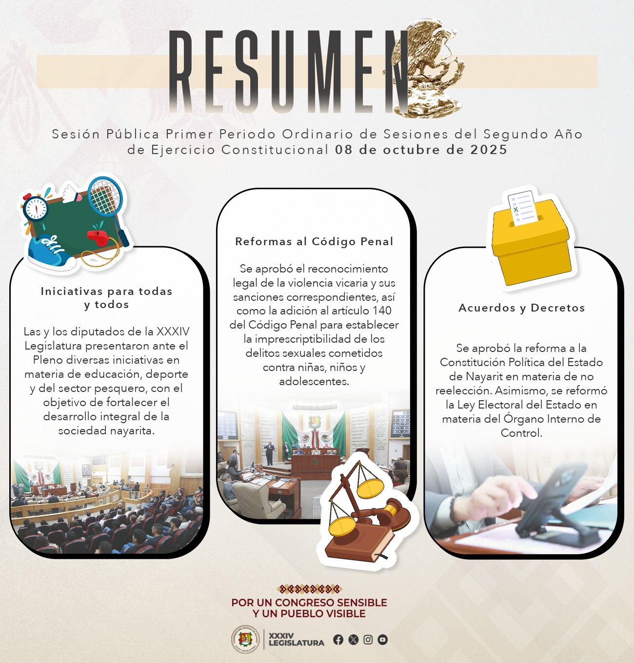 Conoce los puntos que se abordaron en la Sesión Pública Ordinaria del 08 de octubre del 2025 en el H. Congreso del Estado de Nayarit.