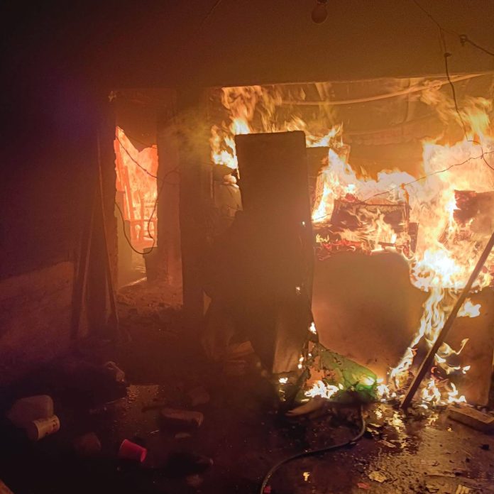 Luego de varios minutos de trabajo, las llamas fueron completamente controladas, enfriando paredes y techos de lámina para evitar una posible reignición.