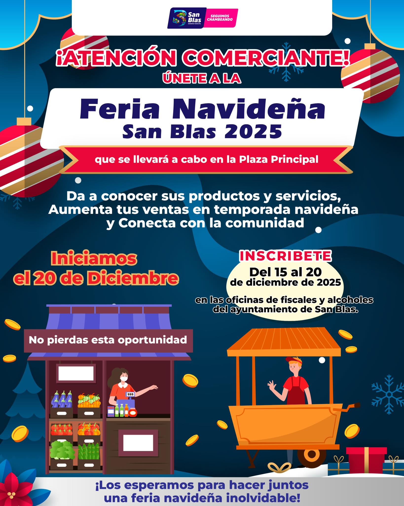 El Gobierno de San Blas te invita a dar a conocer sus productos y servicios en esta temporada navideña, aumenta tus ventas y conecta con la comunidad.