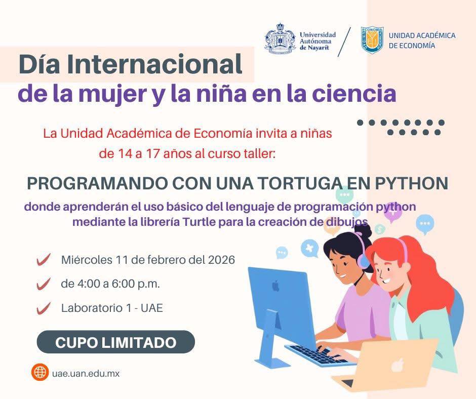 En el marco del Día Internacional de la Mujer y la Niña en la Ciencia, la UA de Economía, invita a niñas de 14 a 17 años a participar en cursos–taller gratuitos, diseñados para despertar su interés por la ciencia y tecnología a través de la programación, los cuales son: