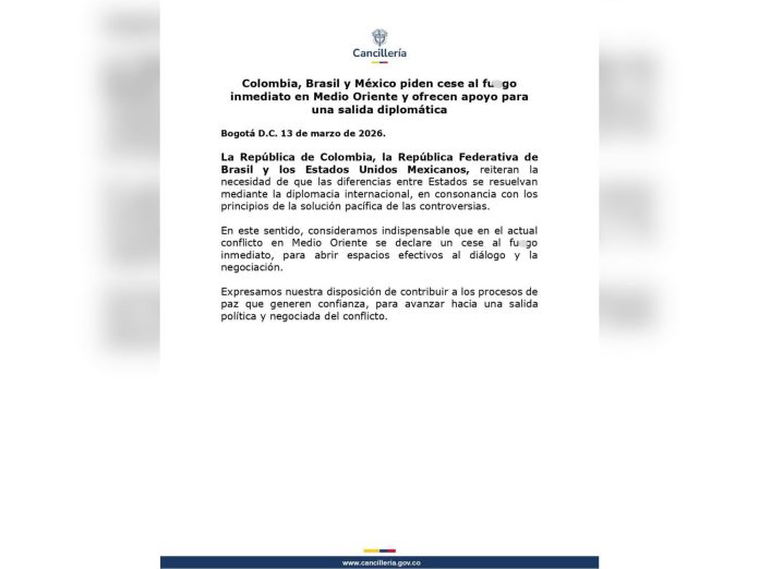 En su posicionamiento, los tres países reiteraron la importancia de privilegiar la vía diplomática para evitar una mayor escalada del conflicto y promover la estabilidad en la región.