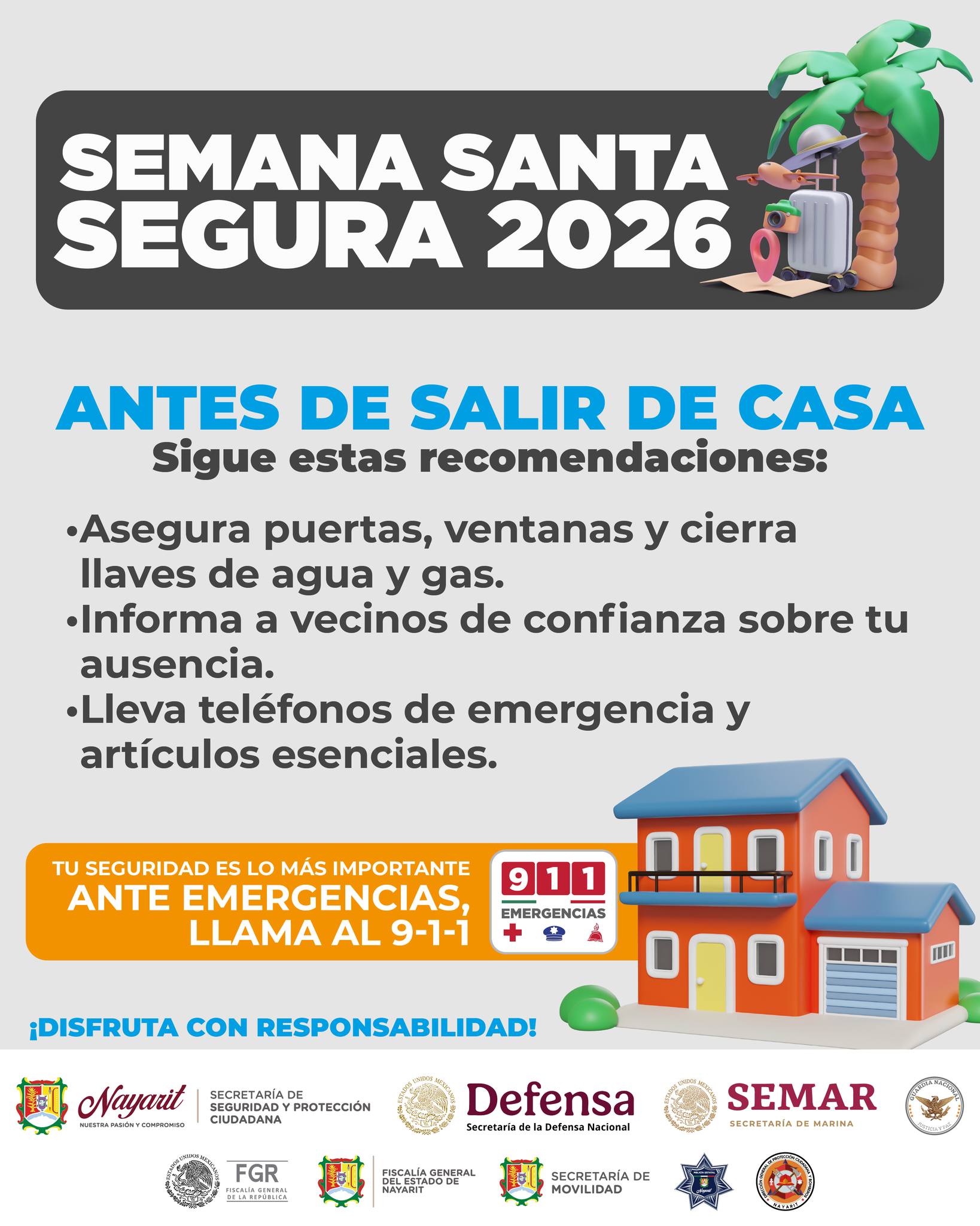 Local Semana Santa Segura 2026 Por admin - 27 de marzo de 2026 0 8 FacebookTwitterWhatsAppTelegram En estas vacaciones ¡Disfruta con responsabilidad! ¡Ayúdanos a cuidarte! Ante cualquier situación de emergencia llama a la línea 9-1-1. Vacaciona seguro, infórmate y disfruta.