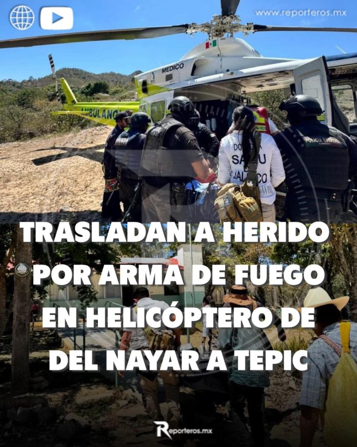 HOMBRE HERIDO POR ARMA DE FUEGO EN DEL NAYAR ES TRASLADADO EN HELICÓPTERO A TEPIC