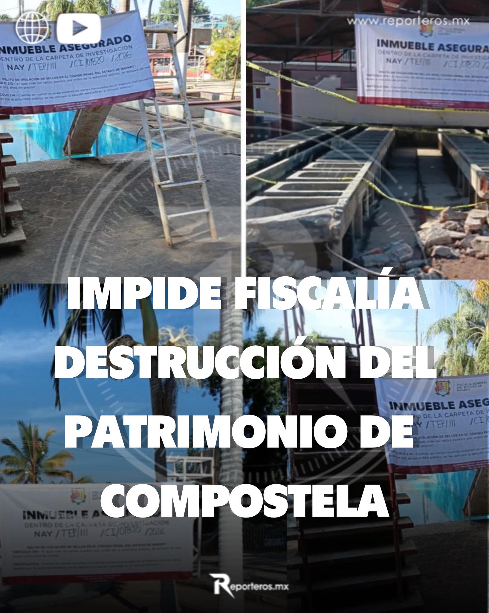 Ante una lluvia de denuncias en contra de la destrucción de los lavaderos de Santa Ana en Compostela, considerados parte de la historia de este pueblo, la Fiscalia de Nayarit puso sellos de aseguramiento para impedir que sean destruidos para dar paso a la construcción de unas canchas de fútbol, tal como anuncio el alcalde Gustavo Ayón, quien comenzó su destrucción sin considerar a los vecinos.